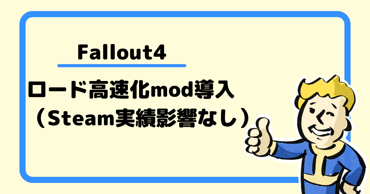 Steam版のFallout4をプレイしてたら、全ロードが遅すぎたので(フリーズを疑うくらい)「Load Accelerator」を導入しました。